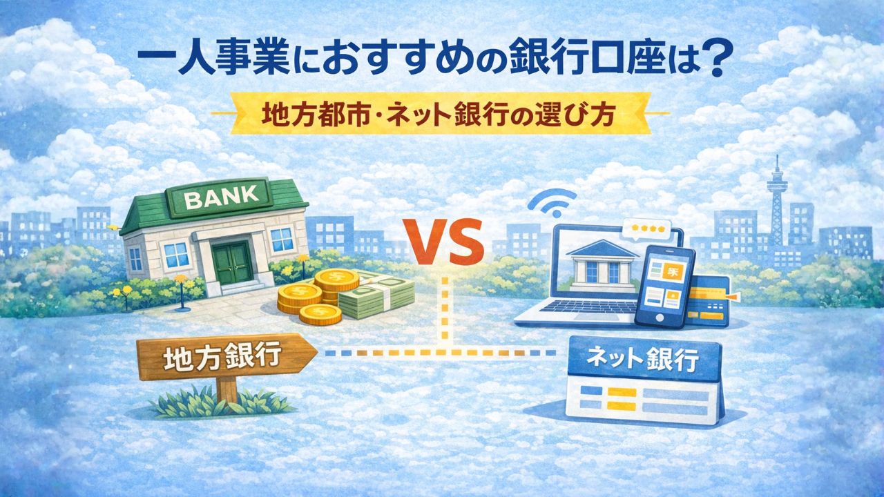 個人事業主として仕事を始めると、「銀行口座はどこがいいの?」と迷うことが多いと思います。 ネット銀行は手数料が安そう。でも、リアルな銀行のほうが安心にも見える。地方都市だと、なおさらその感覚はあるのではないでしょうか。 私の考えでは、一人事業の銀行口座は、1つだけで完結させるより、役割で考えたほうが使いやすいです。 たとえば、 リアル銀行は、現金の入出金や引き落としの安心感 ネット銀行は、振込手数料の安さやネット完結の便利さ というふうに、強みが少し違います。 この記事では、 地方都市での考え方 ネット銀 ...